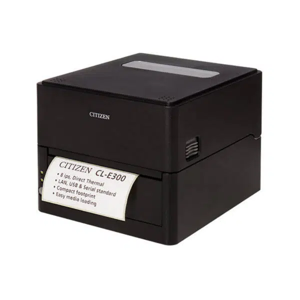 Det lille fodaftryk på den nye CL-E300 gør den til en perfekt printer til trange pladsforhold, men gør det stadig muligt at udskrive labels på op til 4,5 tommer i bredden på en 5 tommer medierulle. Med en indbygget Ethernet LAN-interface som standard sammen med USB- og serielle interfaces er CL-E300 perfekt til alle applikationer. Citizen’s LinkServer webstyrings- og konfigurationssystem er integreret for at give fuld printerkontrol. CL-E300 har 203 dpi- og 300 dpi-versioner samt cutter- og peeler-muligheder, så du kan bruge den i alle direkte termiske applikationer fra lav- til mellemvolumenprint.