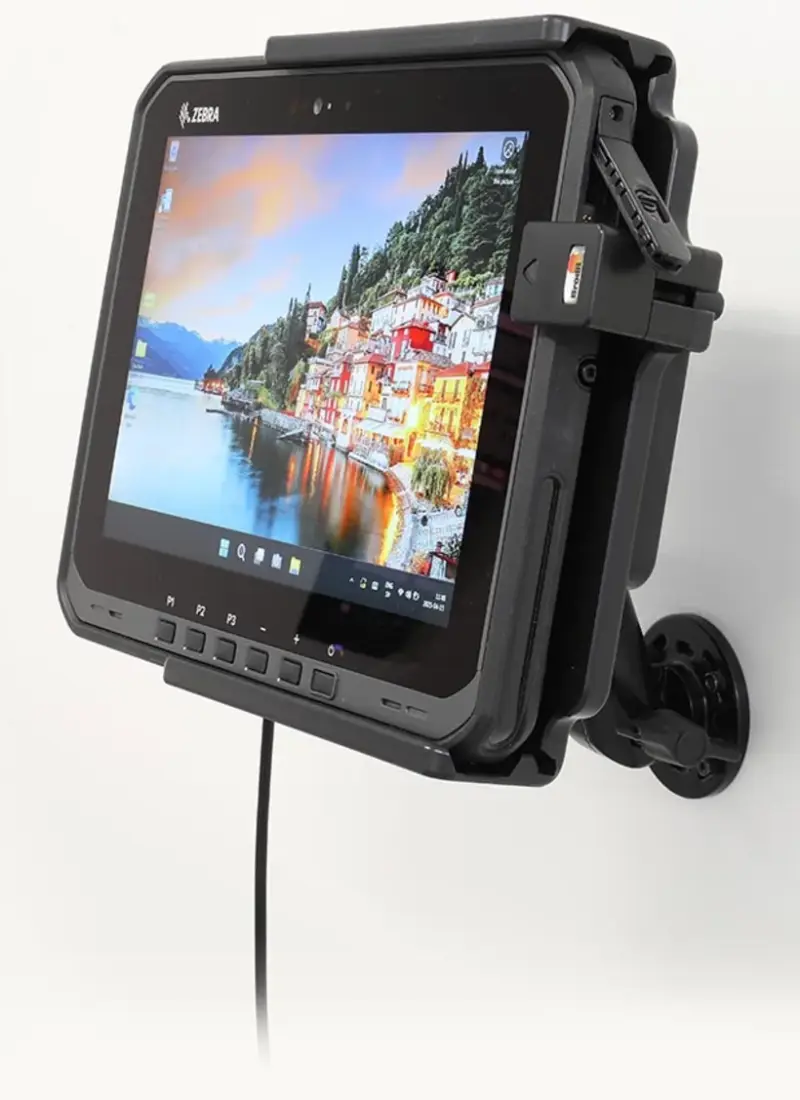 The Zebra ET6x series holders from Brodit are designed to withstand frequent wear and tear in professional every day use, providing a more productive working day and better working environment with your device within sight and reach. Safe, efficient and convenient! To get more out of your holder, you can choose both a power supply or accessories such as a USB hub.