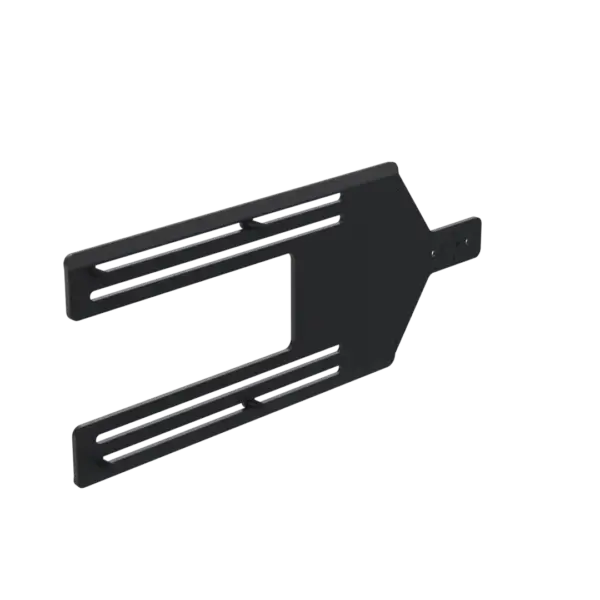 The flexible straight portrait bracket, fixed in between the screen and the VESA bracket, ensures straight alignment between the payment device and the screen. It allows any make of payment device to be mounted to a MultiGrip plate on the side of the kiosk.