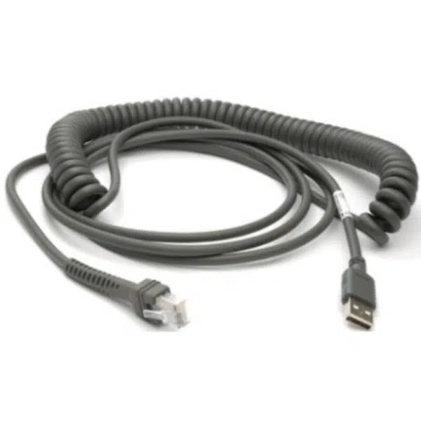Denna spiralformade USB-kabel med Series A-kontakt är 15 fot lång.